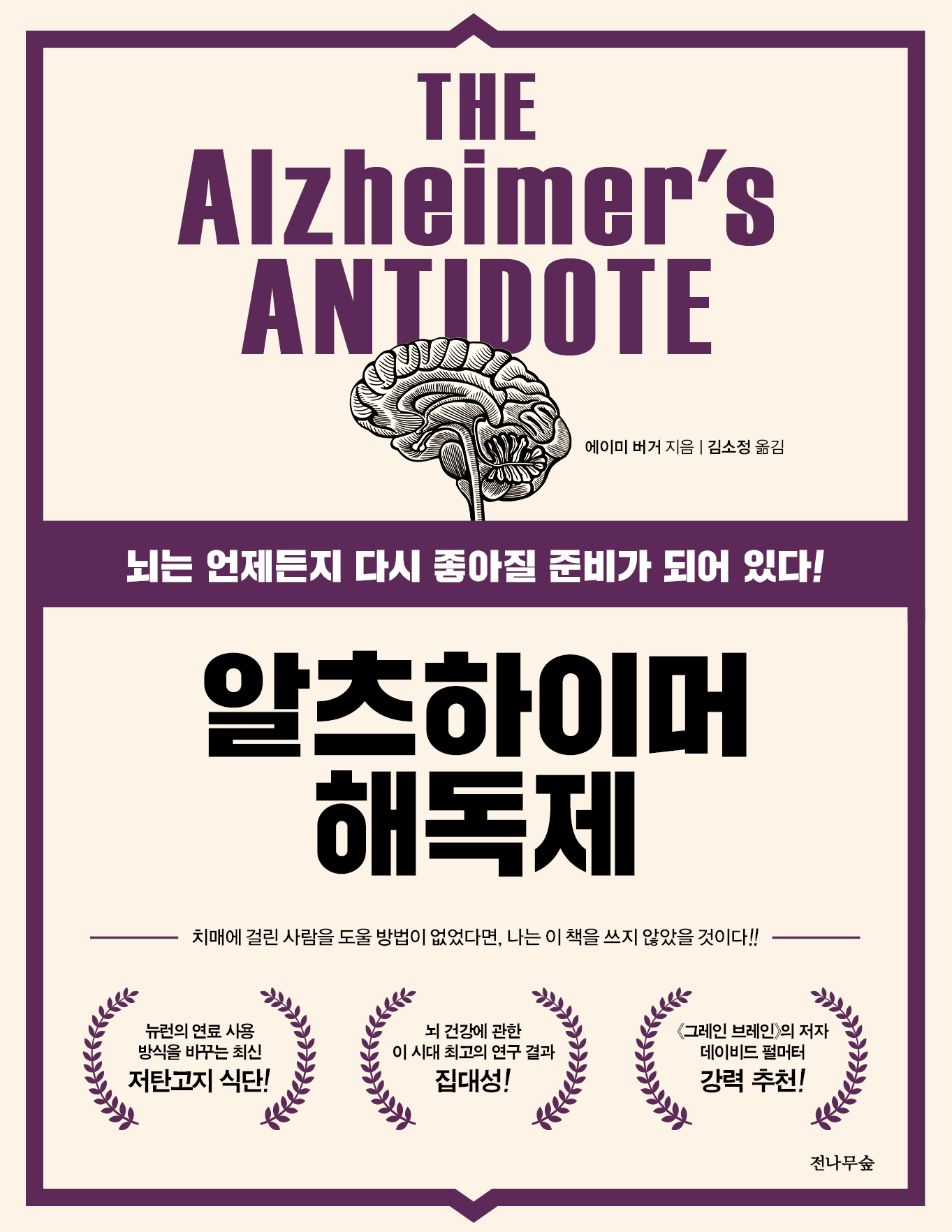 이 책에서 에이미 버거가 제시하는 방법은 알츠하이머에 대한 기존의 상식과 편견을 완전히 바꿔줄 것이다. 또한 이미 알츠하이머 진단을 받은 사람은 물론, 알츠하이머에 걸릴 가능성이 높은 사람, 알츠하이머 가족력은 없지만 걱정이 되는 사람들 모두에게 유용한 정보를 제공할 것이다.
